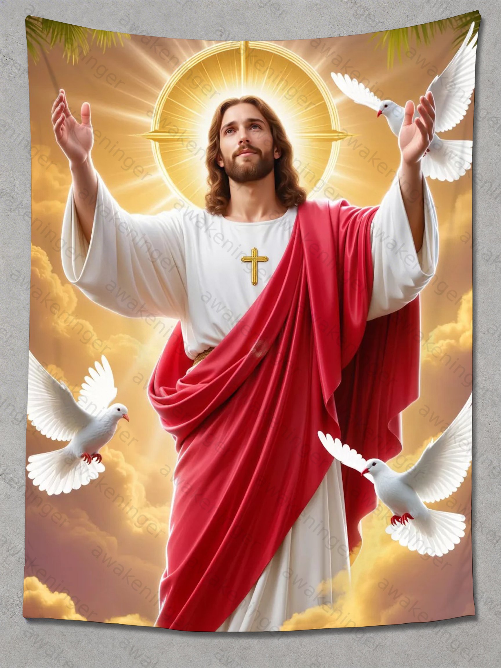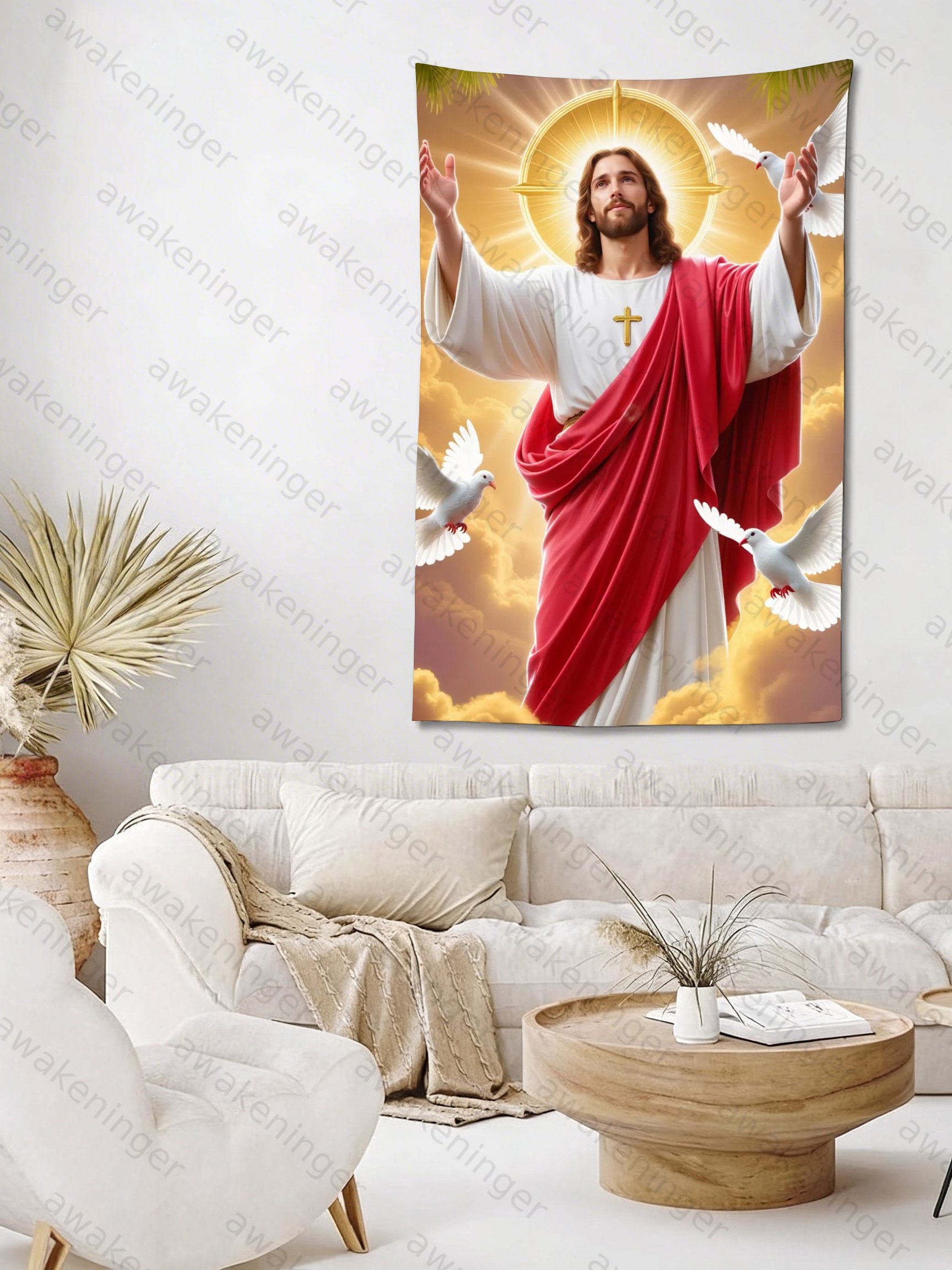 • Jesus Tapestry Decor : Jesus tapestry is made of polyester fabric, which is adjective enough for daily use. It feels soft and is friendly.