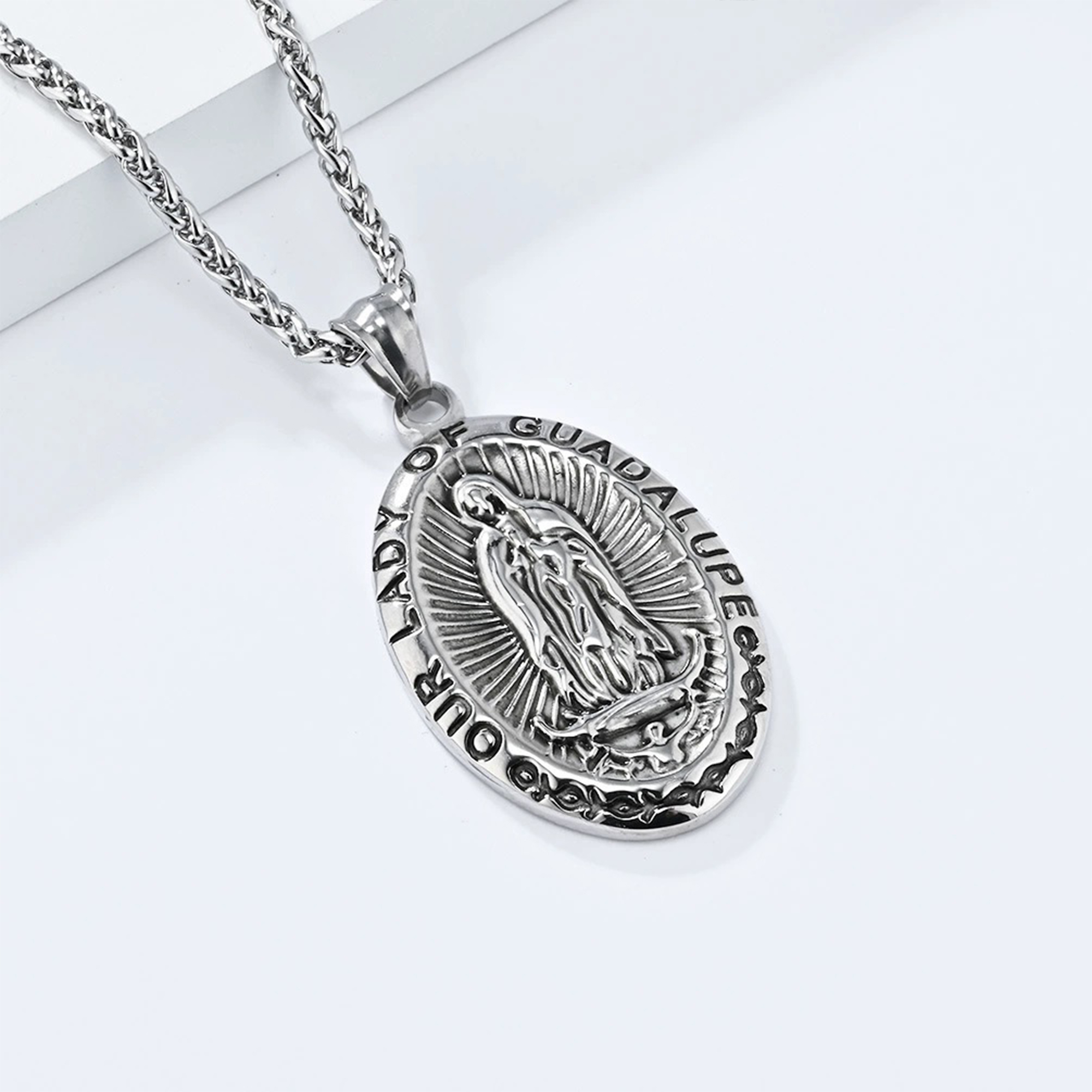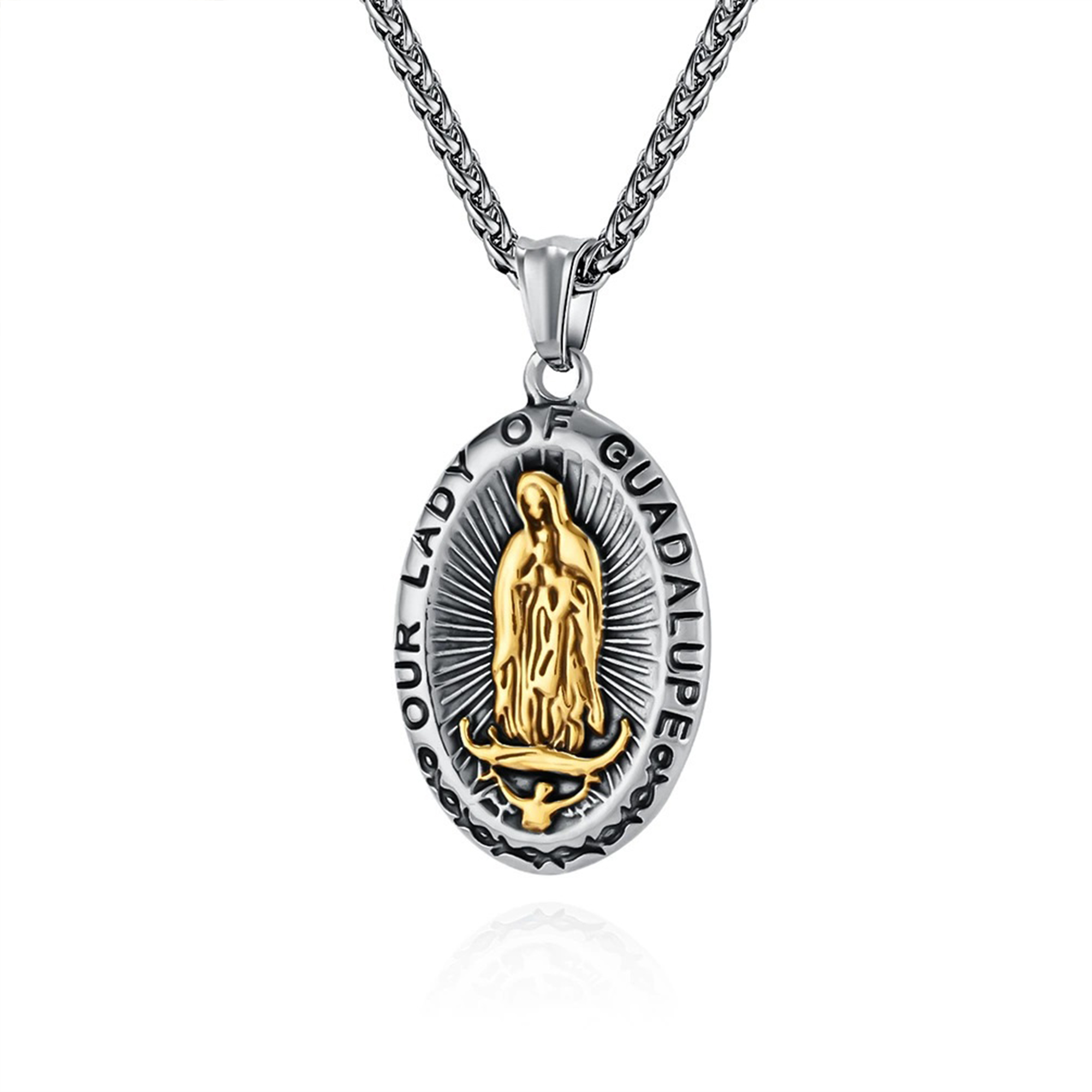 Vintage Distressed Titanium Steel Virgin Mary Pendant Necklace